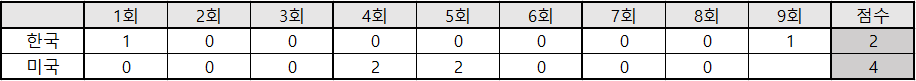 | 3 | 좌 | 김현수 | 4 | 0 | 1 | 0 | 0 | 2 |