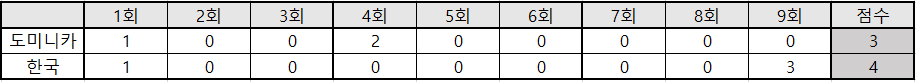 | 3 | 우 | J. 로드리게스 | 4 | 2 | 0 | 1 | 0 | 2 |