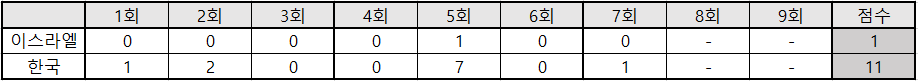 | 2020 도쿄 올림픽 오프닝 라운드 vs이스라엘 기록 (5:6승) (0) | 2022.10.04 |
