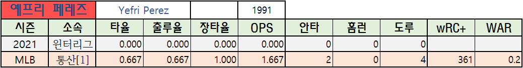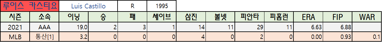 (엔트리의 루이스 카스티요는 현재 디트로이트 소속으로, 우리에게 알려진 1992년생 신시내티~시애틀 의 투수와는 동명이인입니다.)