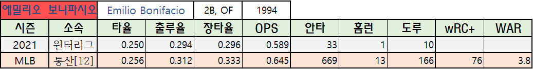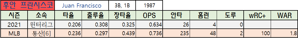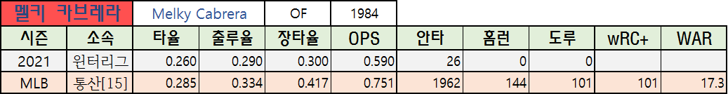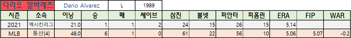 아래 빨간색의 줄은 메이저리그경력입니다. (파란색은 NPB) fWAR, bWAR의 평균값으로 작성하였습니다.