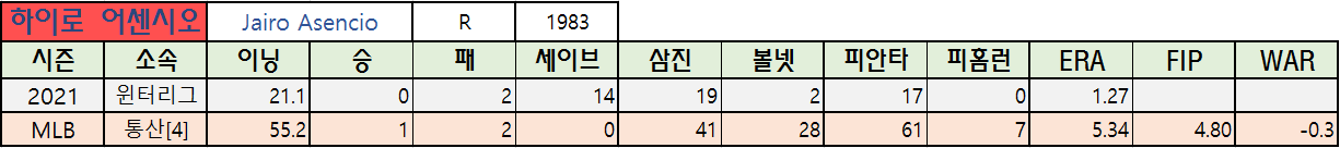 NPB의 메르세데스, 산체스, KBO경력이 있는 어센시오 등 친숙한 이름이 많습니다.