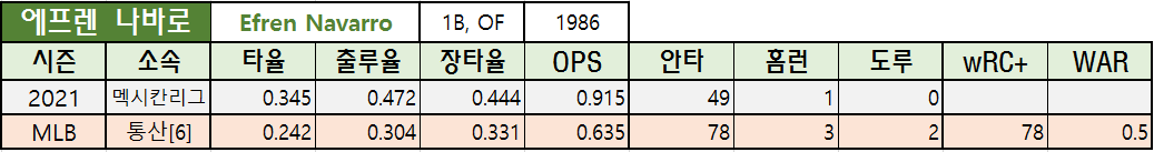 아래 빨간색의 줄은 MLB기록이며 fWAR, bWAR의 평균값으로 작성하였습니다.