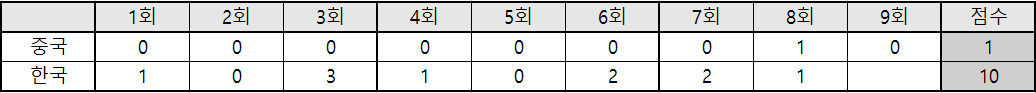 | 6 | 三 | 이범호 | 4 | 2 | 0 | 1 | 1 | 1 |