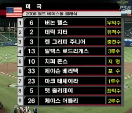 | 2006 WBC 준결승전 vs일본 기록 (0:6 패) (0) | 2022.10.27 |