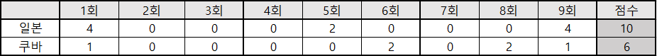 2006 WBC 준결승전 vs일본 기록 (0:6 패) (0) | 2022.10.27 |