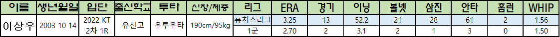 | 이상우 | 2003 10 14 | 2022 KT 2차 1R |