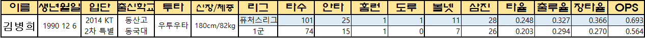 | 김병희 | 1990 12 6 | 2014 KT 2차 특별 |