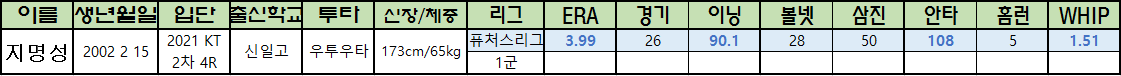 | 지명성 | 2002 2 15 | 2021 KT 2차 4R |
