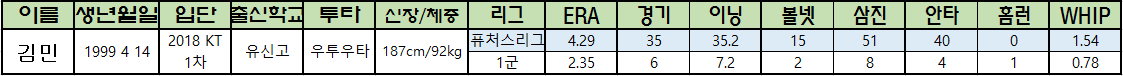 | 김민 | 1999 4 14 | 2018 KT 1차 |