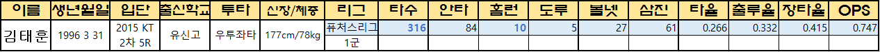 | 김태훈 | 1996 3 31 | 2015 KT 2차 5R |