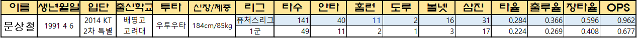 | 문상철 | 1991 4 6 | 2014 KT 2차 특별 |