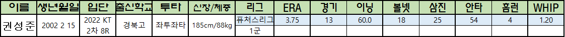 | 권성준 | 2002 2 15 | 2022 KT 2차 8R |