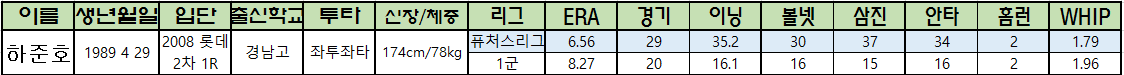 | 하준호 | 1989 4 29 | 2008 롯데 2차 1R |