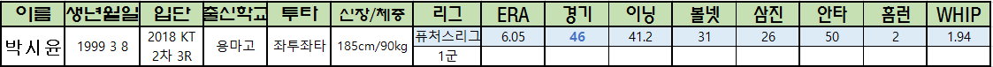 | 박시윤 | 1999 3 8 | 2018 KT 2차 3R |