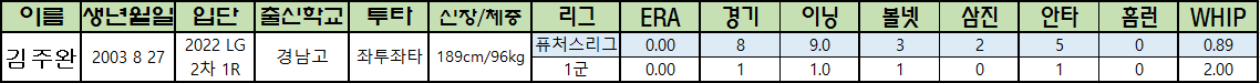 | 김주완 | 2003 8 27 | 2022 LG 2차 1R |