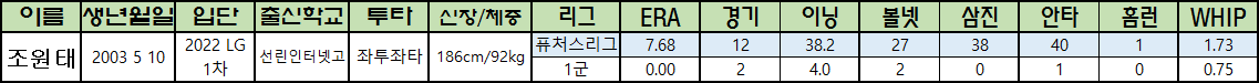 | 조원태 | 2003 5 10 | 2022 LG 1차 |