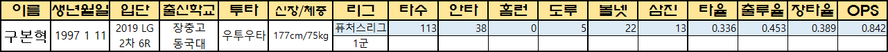| 구본혁 | 1997 1 11 | 2019 LG 2차 6R |