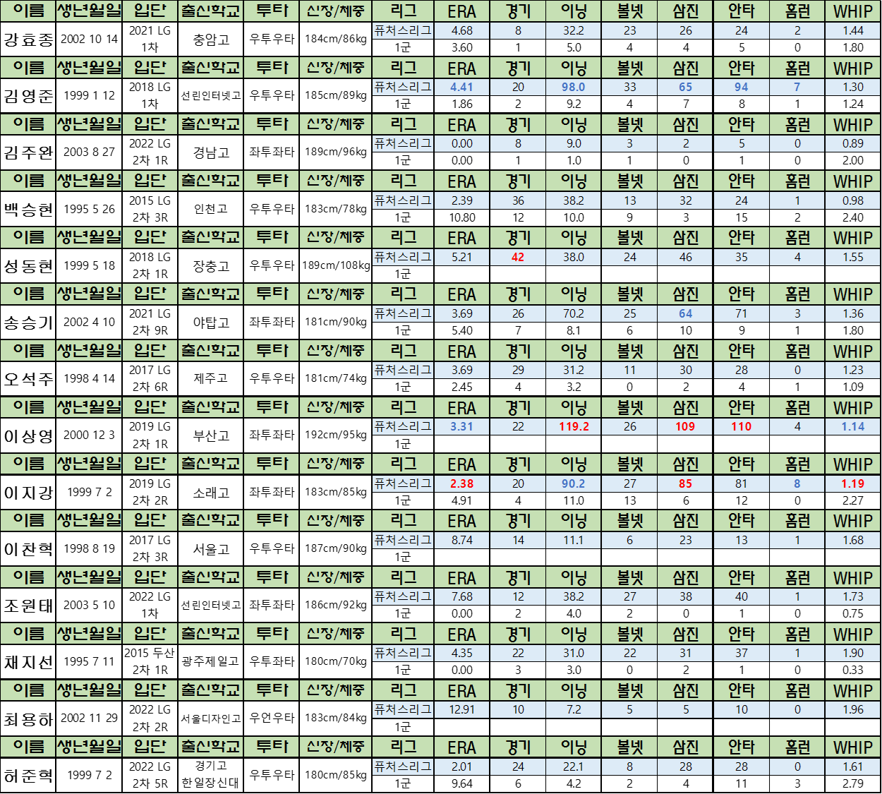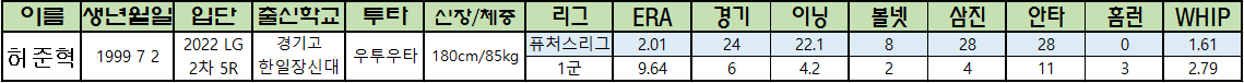| 허준혁 | 1999 7 2 | 2022 LG 2차 5R |