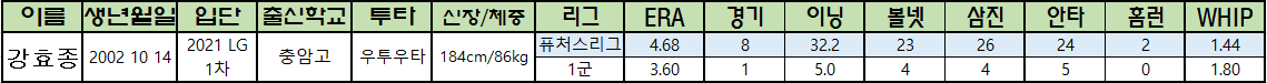 | 강효종 | 2002 10 14 | 2021 LG 1차 |