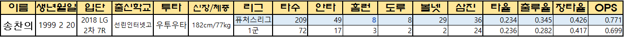 | 송찬의 | 1999 2 20 | 2018 LG 2차 7R |