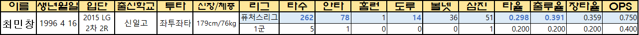 | 최민창 | 1996 4 16 | 2015 LG 2차 2R |