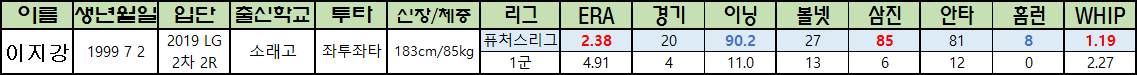 | 이지강 | 1999 7 2 | 2019 LG 2차 2R |