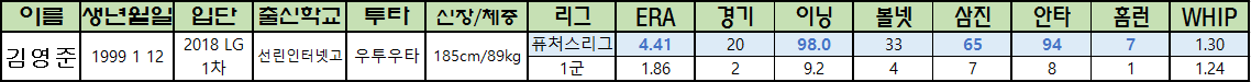 | 김영준 | 1999 1 12 | 2018 LG 1차 |