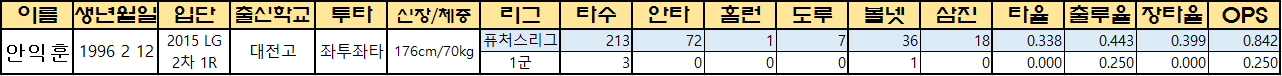 | 안익훈 | 1996 2 12 | 2015 LG 2차 1R |