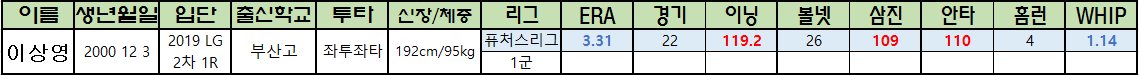 | 이상영 | 2000 12 3 | 2019 LG 2차 1R |