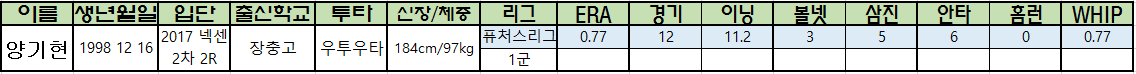 | 양기현 | 1998 12 16 | 2017 넥센 2차 2R |