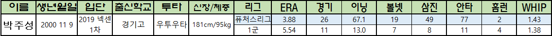 | 박주성 | 2000 11 9 | 2019 넥센 1차 |