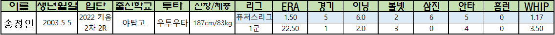 | 송정인 | 2003 5 5 | 2022 키움 2차 2R |