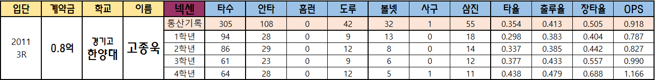 히어로즈 시절부터의 상위라운더 야수들 (3라운드 이내)의 아마시절 기록들을 정리해봤습니다.