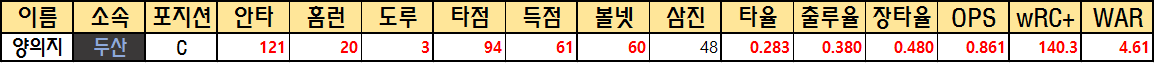 선수 기록의 빨간 글씨는 해당 포지션 1위인 기록입니다.