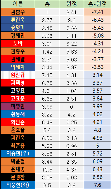 | 송명기 | 2.45 | 7.88 | -5.43 |