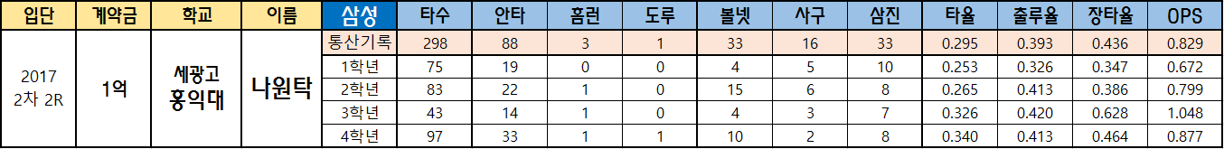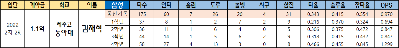 | [키움] 상위지명 야수들 아마 기록 (2000년 이후) (0) | 2022.12.06 |