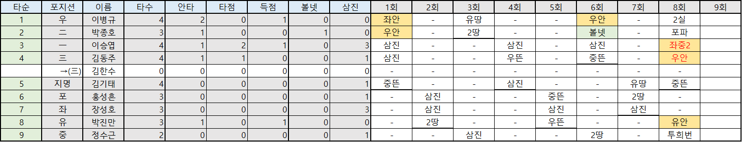 팽팽한 투수전 끝에 8회에 3득점을 해내며 구대성이 155구 완투승을 거둡니다.