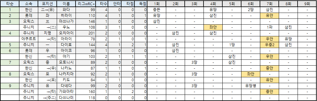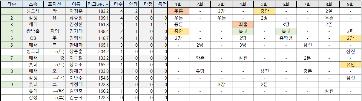 | 1991 한일 슈퍼게임 1차전 기록 (1) | 2022.07.29 |