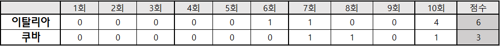 | 2023 WBC 1라운드 A조 파나마 [1] : [3] 네덜란드 기록 (0) | 2023.03.09 |