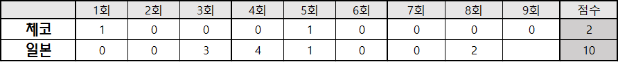 | 2023 WBC 1라운드 B조 중국 [2] : [12] 호주 기록 (콜드게임) (1) | 2023.03.11 |