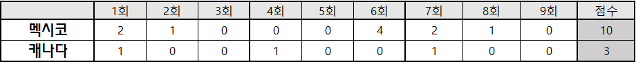| 2023 WBC 1라운드 C조 영국 [1] : [2] 멕시코 기록 (1) | 2023.03.15 |