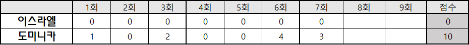 | 7 | 유 | J. 페냐 | 3 | 1 | 0 | 1 | 1 | 1 |