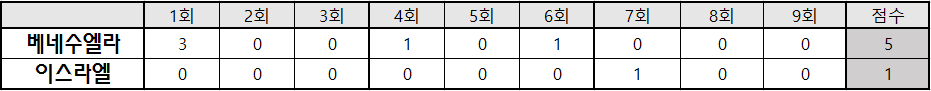 | 2023 WBC 1라운드 D조 니카라과 [1] : [4] 베네수엘라 기록 (0) | 2023.03.19 |
