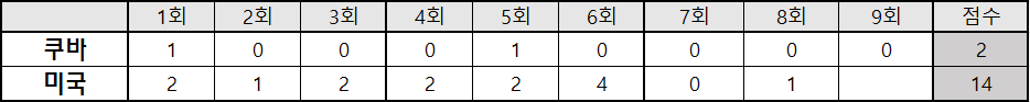 | 2023 WBC 2라운드(8강) 미국 [9] : [7] 베네수엘라 기록 (0) | 2023.03.21 |