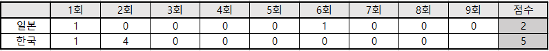 | 1995 한일 슈퍼게임 6차전 기록 (3:8패) (1) | 2022.08.09 |