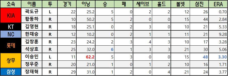 | 2023 KBO 전반기 피타고리안 승률 (7월 13일 기준) (0) | 2023.07.13 |