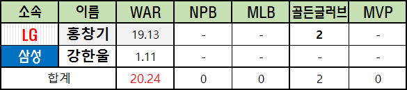 메이저리그 WAR은 bWAR와 fWAR의 평균값으로 표기했습니다.