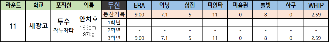 | 11 | 세광고 | 투수 좌투좌타 |