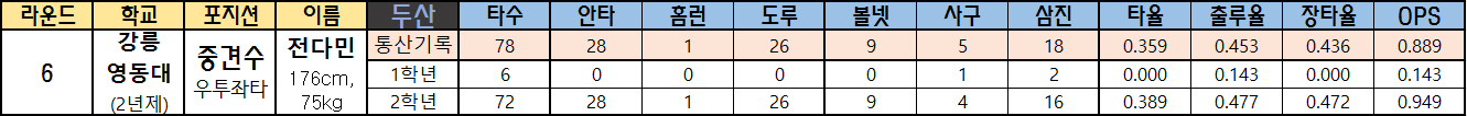 6. 전다민 (강릉영동대 외야수)